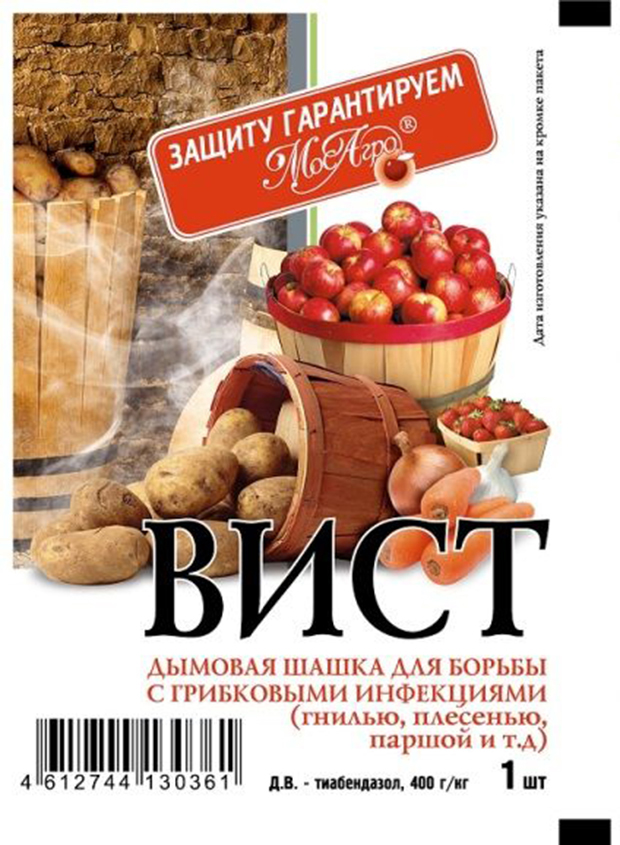 Вист – готовая к применению насыпная дымовая шашка для защиты сельскохозяйственной продукции и помещений различного назначения.