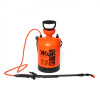 Используется для опрыскивания, подкормки и полива растений, кустарников, деревьев средней высоты, картофеля, а также для мытья стен, стекол и других хозяйственных работ. Бак с цельнолитой заливной воронкой, что не требует дополнительного уплотнения для насоса опрыскивателя к воронке. Подставка бака для устойчивости при эксплуатации . Мерная шкала на баке показывает остаток содержимого. Предохранительный клапан срабатывает при избыточном давлении, что обеспечивает безопасность в процессе эксплуатации опрыскивателя. Брандспойт пластиковый телескопический позволяет заботится о растениях высотой до 650-970 мм. Регулировка струи на брандспойте даёт возможность использовать опрыскиватель как для защиты растений от вредителей, так и для полива (от струи до тумана).