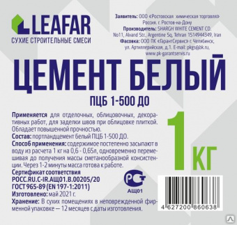 Сухая смесь на основе белого цемента 1кг